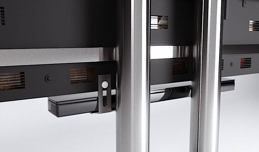 With years of experience handcrafting electronics; we wanted to make sure the beautiful design was not compromised with internal speakers that would not be used. We know our clients expect the best and would prefer the most elite audio by installing a high quality sound bar, for example a Bose, Sony or Yamaha sound bar. With Cinema Smart TV, the two detachable arms will hold any sound bar allowing you to integrate the best sound without sacrificing appearance.