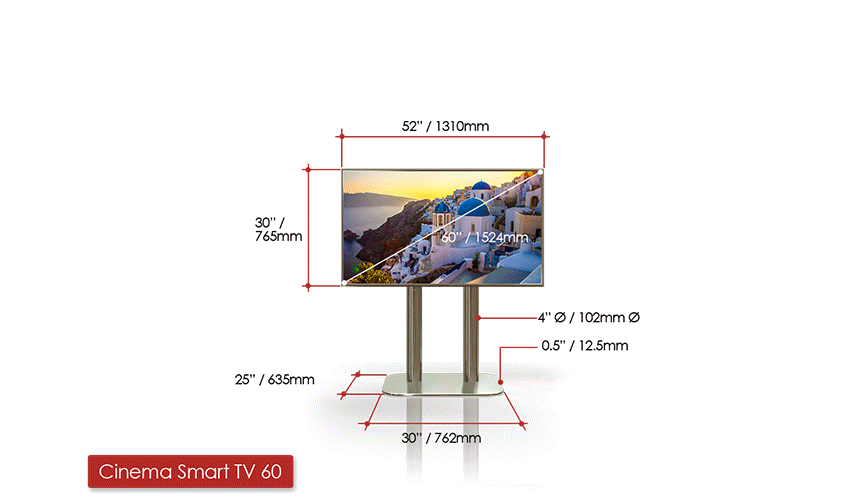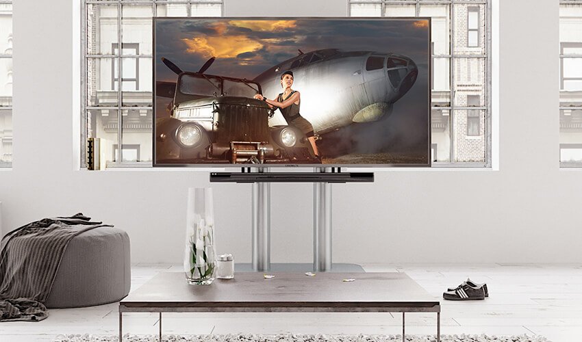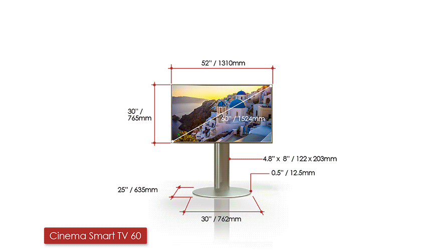Cinema Smart TV comes with a super 4K Ultra HD resolution so every detail of its vibrant display is maximized. Cinema Smart TV comes standard, with a beautiful stainless steel floor mount for easy set up.