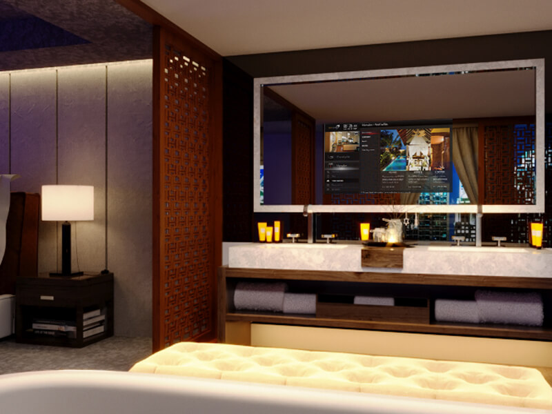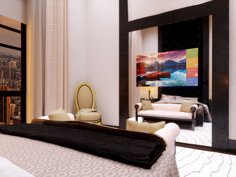 LG and Samsung hospitality TVs in combination with Mirrorvues’ High Grade Mirror Glass Brilliance. This dynamic union opens a whole new world of automation and style. Design a hotel room with the latest in technology while still maintaining a beautiful and elegant atmosphere. This allows you to showcase only the best to every guest.