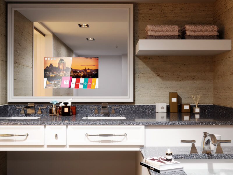 For absolutely stunning results, you can choose the new OLED TV in combination with our MirrorVue mirror glass. This is guaranteed to wow each guest with its vibrant TV picture and custom design. Don’t miss an opportunity to connect guests to what they want the most; unprecedented entertainment.
