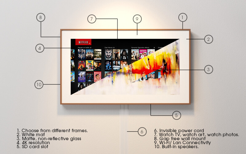 Spectrum Smart TV Display is more than just an art display; it’s a fully functional smart TV. Equipped with the latest Android TV software and pre-installed apps, enjoy seamless access to popular streaming services such as Netflix and Hulu.